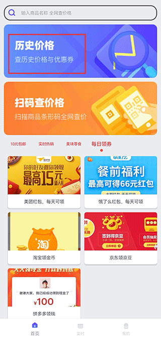搜索商品名称,查询各大电商实时价格、优惠券、历史价格。慢慢购买,再也不用担心买贵。打开比价商品自动查历史价与商品优惠券,不放过每一个省钱机会。