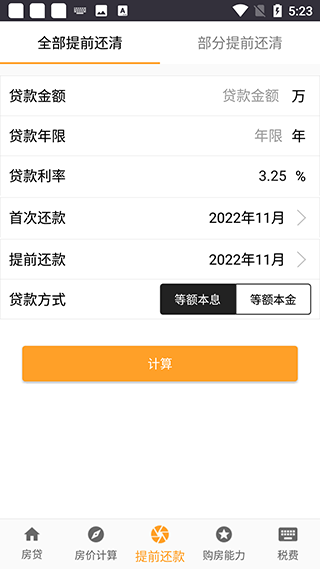 2、提前还款计算器支持全部还清和部分还清。