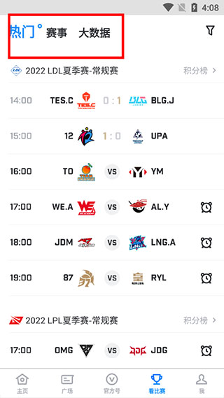 4、在这边,我们可以看到各个赛季的直播,也可以看到赛季的数据分析。