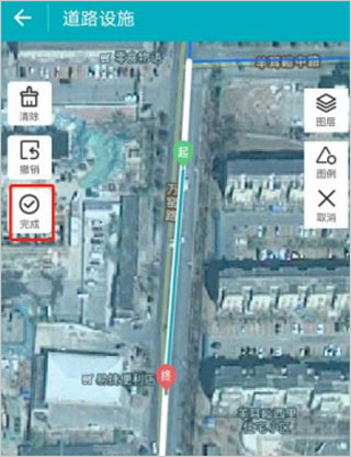 3、若底图道路数据缺失,需要在地图界面右上角点击【新增】,根据实地情况进行道路绘制,点击【完成】结束绘制。