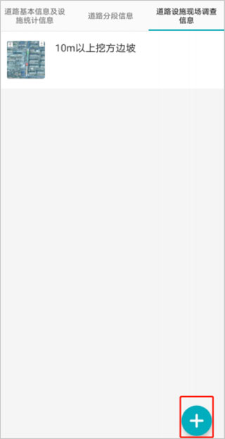 10、在信息填写界面中选择【道路设施现场调查信息】,在页面中会显示道路设施列表。