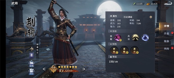 荆轲作为开局比敌人多30怒气,还能无视敌人护甲造成大量伤害,但生命值低于10%,进入短暂无敌状态,如果敌人是武将,造成20%额外伤害。 兵法推荐:出其不意,雷轰电转,乘胜追击,致命一击