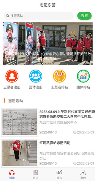 在志愿东营app上可以了解到市区的志愿者活动信息。