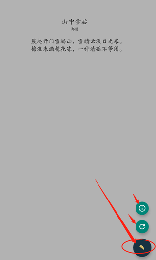 2、向右滑动,点击右下角图标后点击刷新就会更换诗词和背景