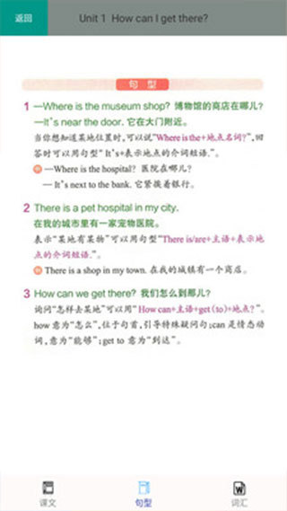 【3】课文单词:与教材同步单词,包含单词翻译、造句、读音等;