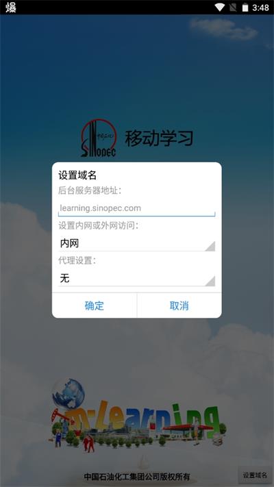 2、点击右下角的【设置域名】,可以填写后台服务器的地址、设置内网还是外网进行访问以及代理设置;