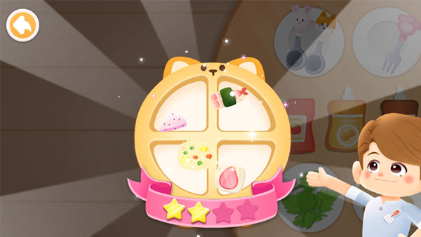 7、系统会根据宝宝选择的菜符不符合健康饮食来打分,得到的星星越多表示宝宝选择的菜越合理。