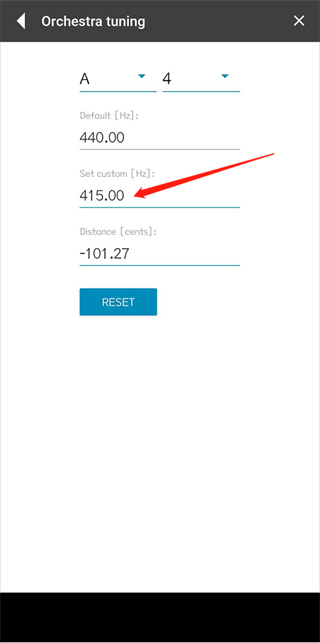 3、再点选Set custom {hz} 下方的数值440.00,将其改为415.00 或其他需要的数值