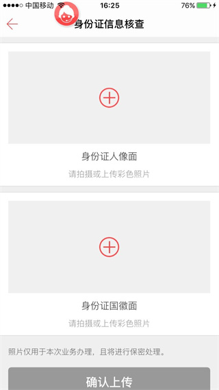 5、上传有效身份证正反面;