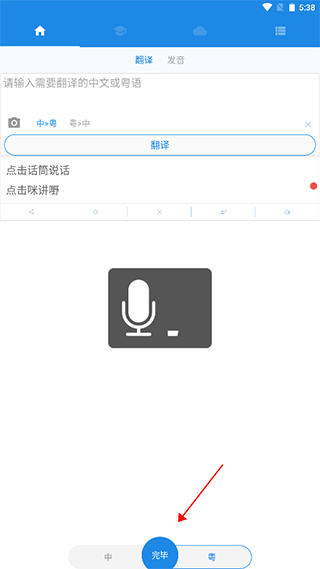 1、打开app,点击这个麦克风说出你想要翻译的语句