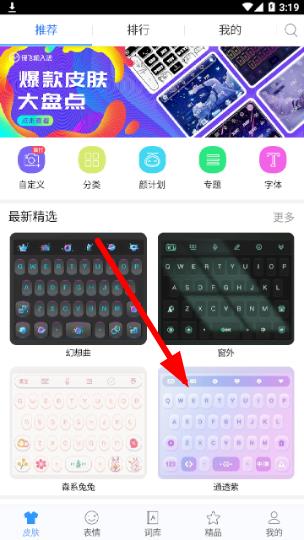 5、个性皮肤海量免费精美皮肤,更有自定义盲打键盘