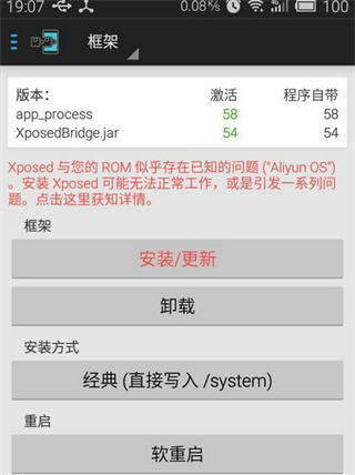 在您安装xposed时请务必确认您的手机已经成功Root并且您的当前android版本支持xposed。