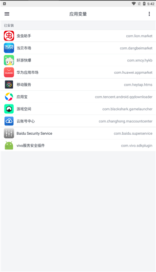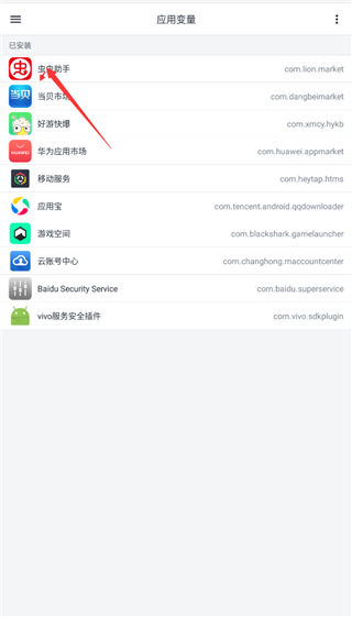 1、打开“应用变量”即可看到当前手机的已经安装的应用列表