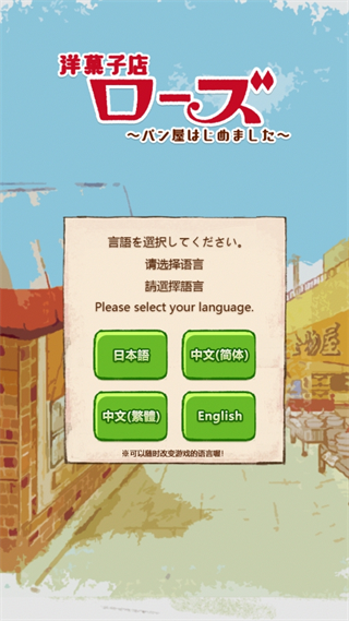 1、下载安装好洋果子店ROSE2,进入游戏,语言选择【中文(简体)】。