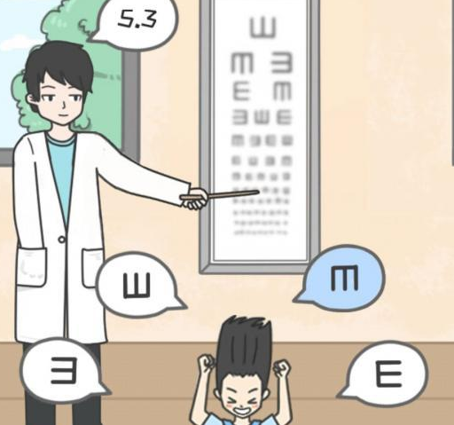 第21关:点击获得医生的纸笔然后对着视力表用,得到的视力表给男主,然后点击不同颜色对话框就好了;