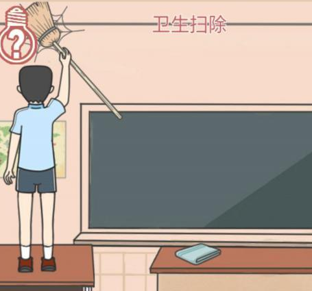 第30关:滑到右边获得扫把和垃圾桶,回到左边用黑板擦擦黑板,然后用垃圾桶收拾粉笔灰,扫把扫墙角的蜘蛛网,够不着然后点击桌子搬桌子,扫完之后用抹布擦掉脚印,然后点击开始;