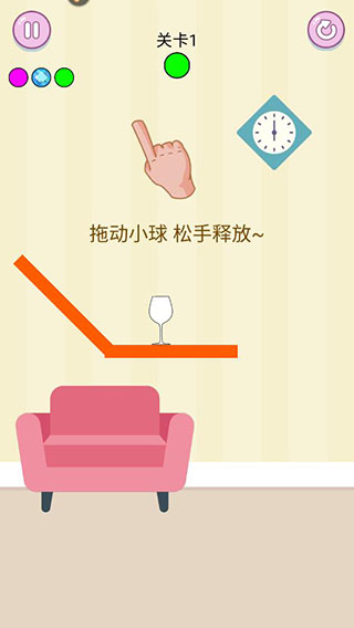 4、游戏的操作方法很简单,只要拖动小球然后松手释放就可以了;