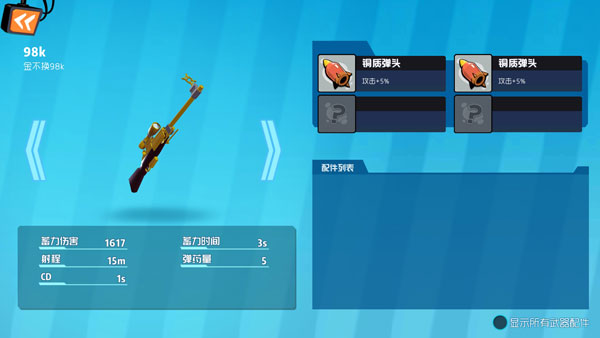98k,超视距打击武器之一,击发方式和效果与弓箭类似,但是在随着攻击距离增长的同时游戏内的视距也会变得巨大起来!以前还会有博士蓄力之后释放大招获得视距的小bug,但已经被修复了。