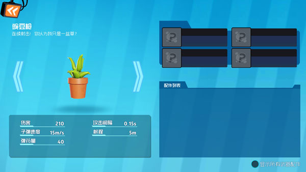 豌豆枪,极快的射速和攻击间隔,使你完全可以用它来冲锋陷阵,子弹自带的击退效果和大容量的弹匣,让你可以轻松击败对方!!