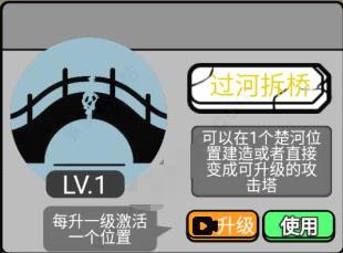 可以在1个楚河位置建造或者直接变成可升级的攻击她,每升一级激活一个位置