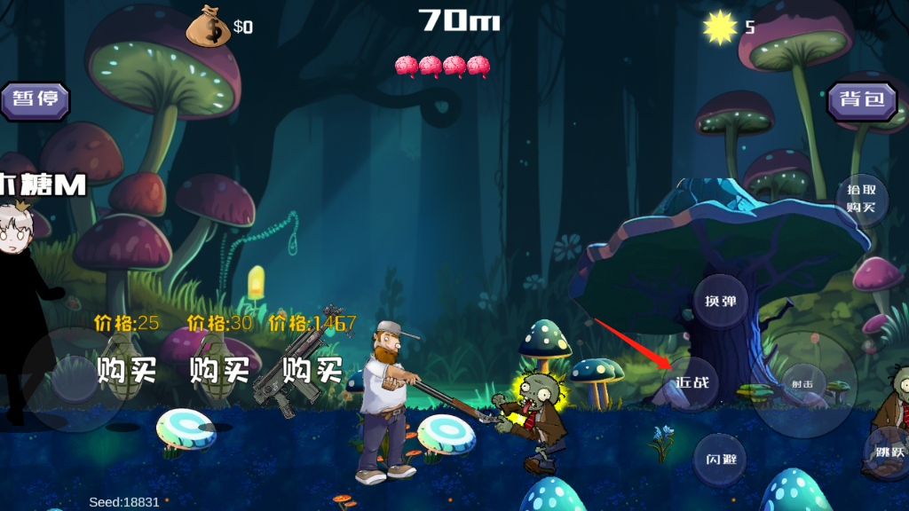 4、当离僵尸比较近的时候,可以选择近战,注意也不能离得太近哦,不然的话是打不到僵尸的。