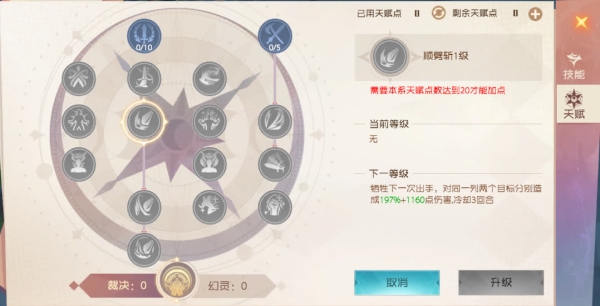 此套天赋,加成血量,攻击,对于先手自己的敌方伤害增加。提升附体状态下的能力值,20天赋点之后解锁初级致死打击,对单超强伤害,配合技能戒骄戒躁的减敏捷,可以做到最后一个出手,完美获取加成。技能学习建议,优先点戒骄戒躁,后续可以补诸刃