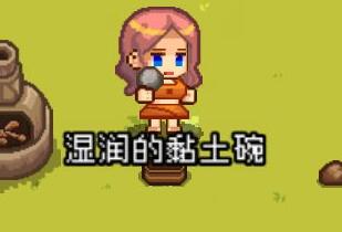 ● 这里我们要做三个碗和三个盘子,拿起圆石,做碗的话在黏土上砸一下,做盘子的话先砸出湿润的黏土碗再在黏土碗上砸一下就变成了湿润的黏土盘了。