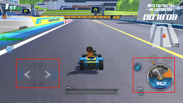 3、左手边的两个键可以控制飞车的方向,右手键可以加速;
