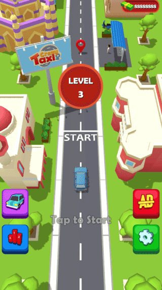 想体验出租车司机每天的日常工作吗,那不妨试试小编这次为大家带来的疯狂出租车手机版,英文名“Crazy Taxi”,它能让你体验一把真实的出租车生涯,从开始的接送到穿过车流密集的十字路口又或者是火车轨道,将客人送到制定地点去。不过这并不是一件容易的事情,游戏虽然只有点击屏幕加速这样的简单操作,但是频繁的穿过马路使人很容易撞击到其他汽车,因此集中注意就变得非常的重要。另外,疯狂出租车手机版动感节奏的音乐使得你玩起来非常的上头,而且疯狂的加速闯过马路也是非常的刺激!心动的小伙伴赶紧下载试试!