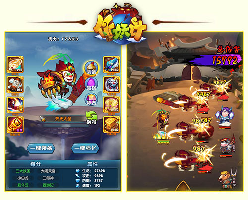 采用的是玩家最为熟悉的回合游戏战斗设定,玩家可以通过弟子的缘分组合、装备组合、技能升级等方式来提高战斗力,从而获得战斗的胜利。