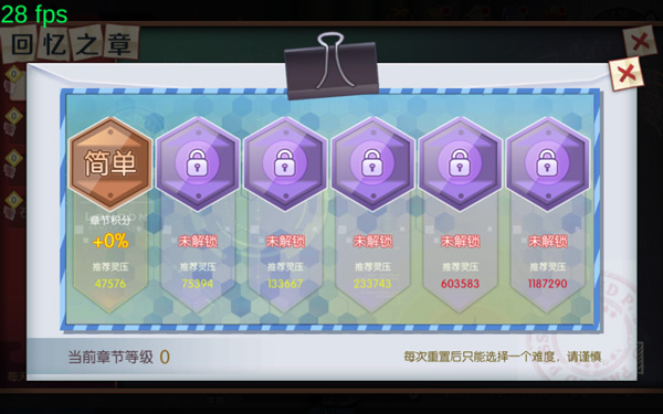 每个章节分为不同的难度,单天通关当前章节的难度,在重置时会开启下一个难度;