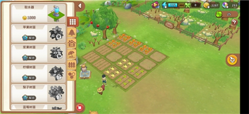 10、种植果树后,每颗果树收获5次后即会枯萎,需要砍掉后才能重新种植,每种类型的果树最多种植5棵;