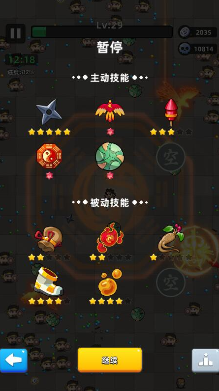 推荐第一个技能选择八卦阵,其他技能有一定的CD时间,要么就是不能持续发射,不能很好应对源源不断生成的敌人,没有选择八卦阵的主公就需要灵活的走位来弥补技能的空档期了,后期就慢慢根据技能组合升级即可。
