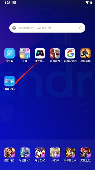 1、打开手机页面,打开【疯读小说】,如下图所示
