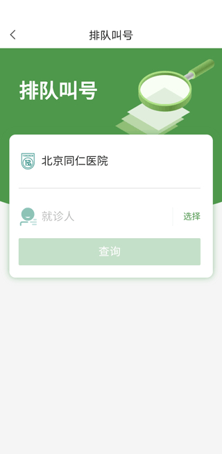 3、在首页中点击“排队叫号”按键,选择就诊人,点击查询即可看到自己的排队情况。