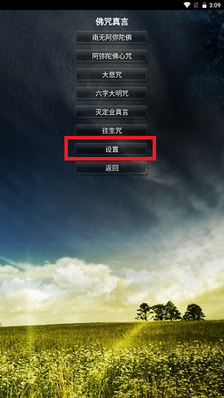 1、点击“佛经驱鬼”,进入界面选择“设置”
