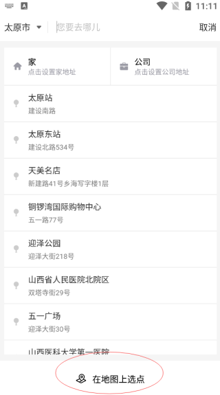 2、会近期去过的地方,然后还能通过地图选择位置。