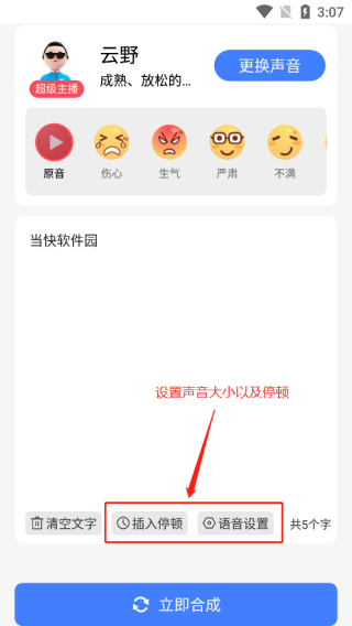 4、图示选项可以设置配音声音的大小或是语气停顿