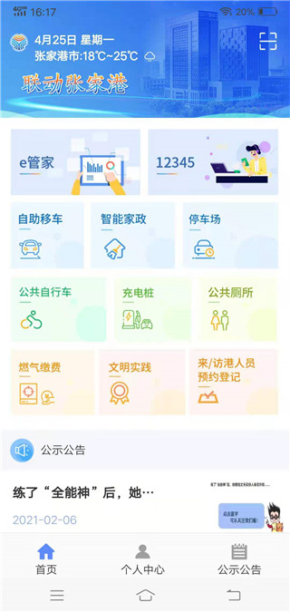 界面设计也很贴心,首页有自助移车、智能家政、停车场等功能,个人中心可以查看详细信息,公示公告里还有各种最新讯息。积分制度也挺有意思的,完成阅读或提供建议就能获得积分,还能兑换小礼品呢!软件特色更是亮点十足,不仅能了解风景名胜,还能看现场活动直播,和本地电视节目同步播放,政务通知也能一手掌握。