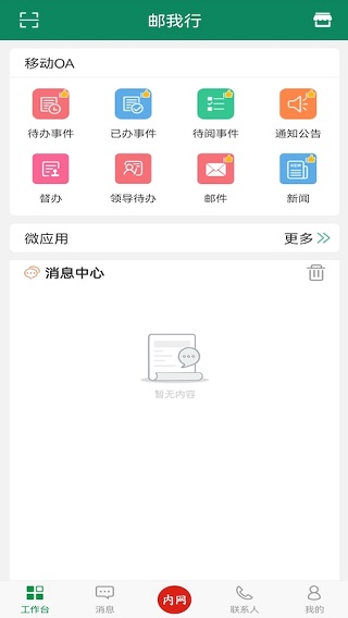 邮我行app最新版本是中国邮政集团掌上办公官方应用,专为邮政工作人员打造,主要提供了网点查询,运费估算,公文审批、邮箱、新闻、通讯录、IM及时通讯、打卡、会议助理、网盘等功能,不管是工作对接,线上会议,还是请假审批都可以在app中进行。邮我行app不仅能够帮助员工提高工作效率,促进同事之间的交流,用户还能轻松获得最新的邮政资讯。