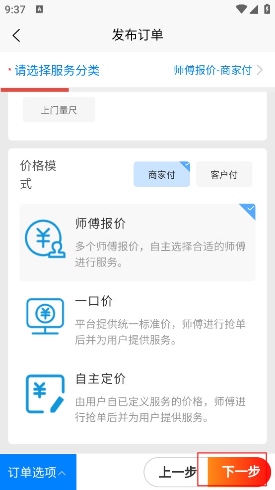 4、师傅报价后,选择合适的价格并支付,师傅就会在指的时间上们提供服务;