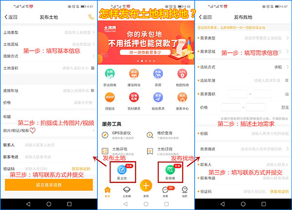 1、填写基本信息:包含土地类型、区域、流转方式、面积、流转年限、价格、标题、联系人信息。其中价格为选填项,有标价的土地更容易被客户看到。如不填写价格则为面议