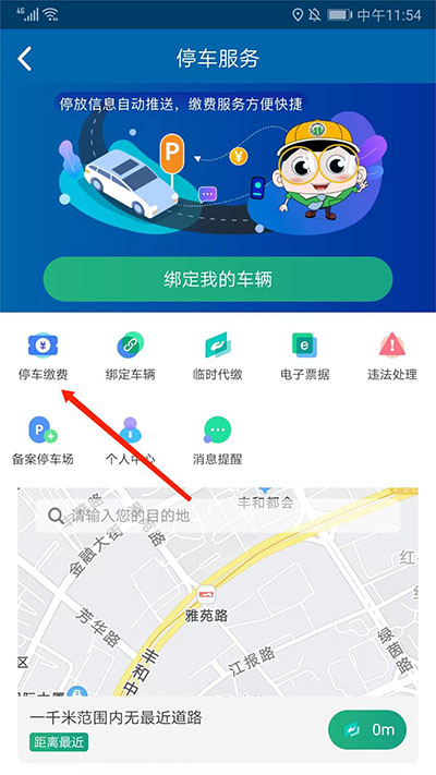 2、进入停车服务界面,选择“停车缴费”选项,