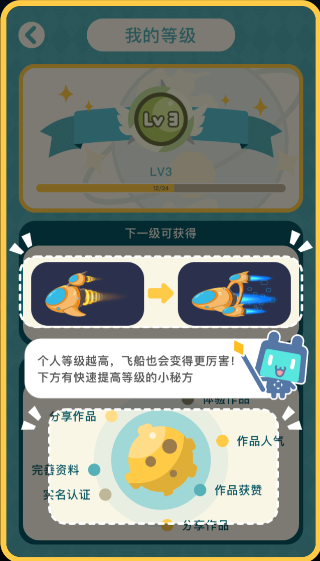 7、点击头像可查看个人信息,等级越高飞船越厉害