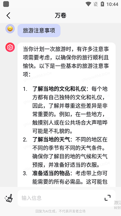 当你想要出去旅游你可以问问它,旅行需要注意那些事项都会给你建议参考!