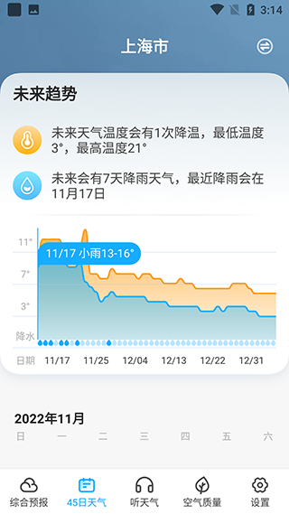 4、点击底部45日天气可以查看未来45天的天气趋势。