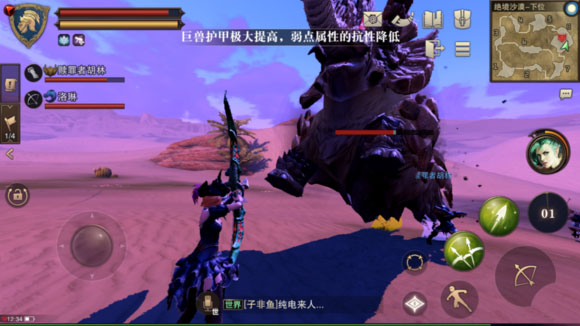 要说起战斗前的准备工作,观察是最主要的,就像是打仗的时候,需要侦查一般,了解巨兽的特性、技能还有攻击方式,这些都能辅助你取胜。就拿荒漠猛犸来举例子,荒漠猛犸的技能在接触过一次之后,就晓得了,最有效的技能在于那个防御类的技能,减免伤害,强化部位,能够让你每次攻击的时候造成一点伤害。这个技能有些恶心,但是等它持续时间过去就好了,这点不难。