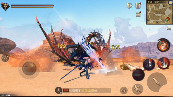 另外,它还有两个小技能,一个就是战斗的时候,会扬起前脚,重踩一下,这样你就会被它震慑,不能动。一个就是会跪下滑过去,这个技能会控制你。它的攻击伤害还可以,就是要注意技能了,不要得意忘形,最终没躲开技能,这样很亏。