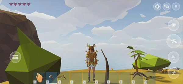 新手刚开始需要先做一把石斧,用来砍树、打猎,然后搭建营地、生火做饭。解决温饱后就能造船出海,探索更多岛屿了。造船的过程有点复杂,但好在游戏里有详细教程,跟着步骤一步步来就行。有了足够的资源,制作工作台和工具后,就能解锁更多的玩法。