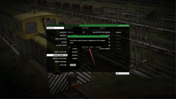 4、选中简体中文后点击右下角的“ok”,会有一个弹窗,根据箭头点击中间的“pestart now”选项立即重启游戏后就生效了。